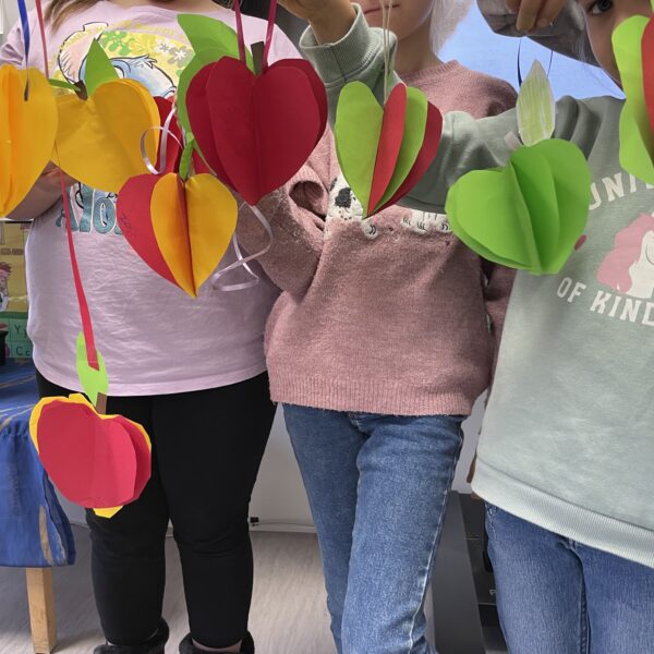 Im Sachunterricht haben die Eisbärenkinder das Thema “ Der Apfel“ beendet. Im Kunstunterricht fand heute zum Abschluss dazu noch ein fröhliches Basteln von kleinen Äpfeln aus Buntpapier statt. Die Kinder hatten viel Freude dabei und möchten auf diesem Wege einmal ihre reiche „Apfelernte“ zeigen.